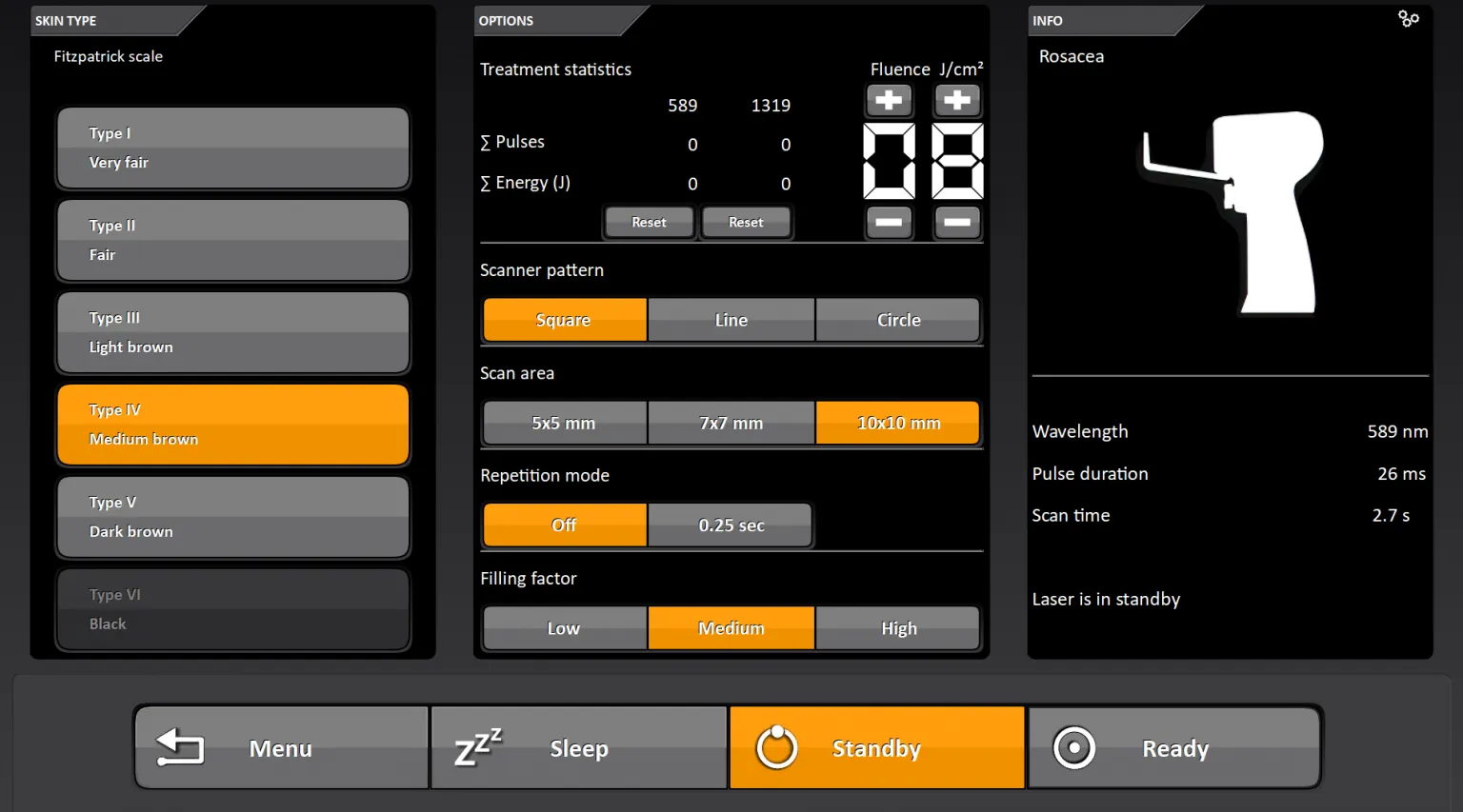 Поєднання потужної енергії жовтого та інфрачервоного лазерів для покращення тонусу, текстури та загального здоров’я шкіри шляхом впливу на судинні компоненти мелазми, дисхромії, сонячних променів і небажаного пігменту, одночасно зменшуючи зморшки, обмежуючи вироблення шкірного сала та зменшуючи розмір пор.